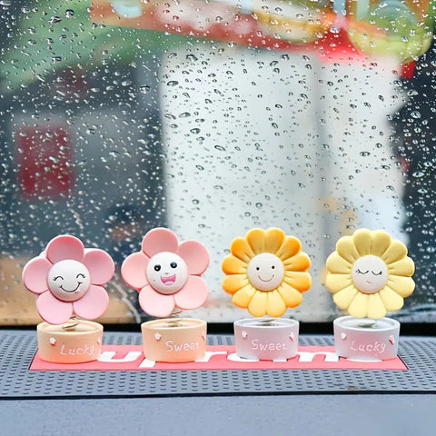 Car Shaking Head Sunflower Decoration Cute Sun Flowers Shake Head Ornament Car Interior Accessories Tabletop Gift Collection Toy